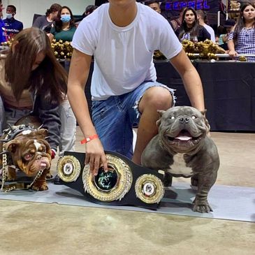 Mack Sauce is our award winning exotic. We like to call him a switch hitter as he is capable of producing best of both worlds (American Bully and Exotic) Style of dogs. Mack Sauce is a proven producer and is nearing retirement. Year 7 of life and five years of breeding.
